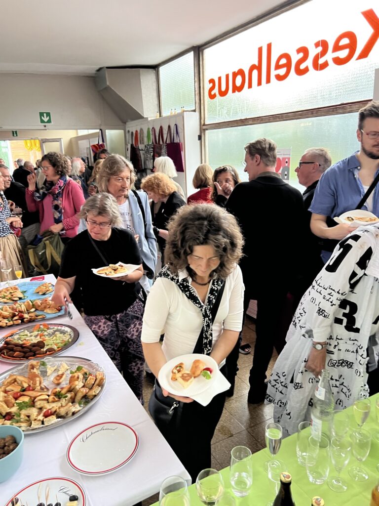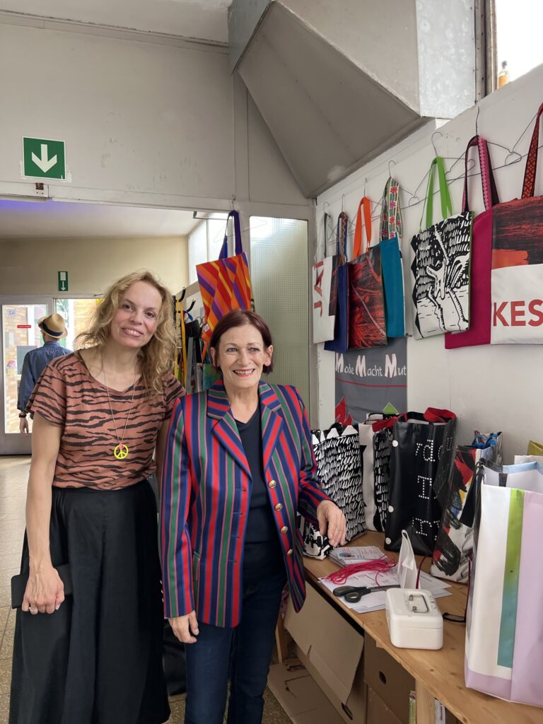Mit Ausstellungseröffnung, Taschenverkauf, Druckwerkstatt, Malen unter freiem Himmel, Kaffee- und Kuchen, Buffett, Musik und Tanz und Mitgliederversammlung.